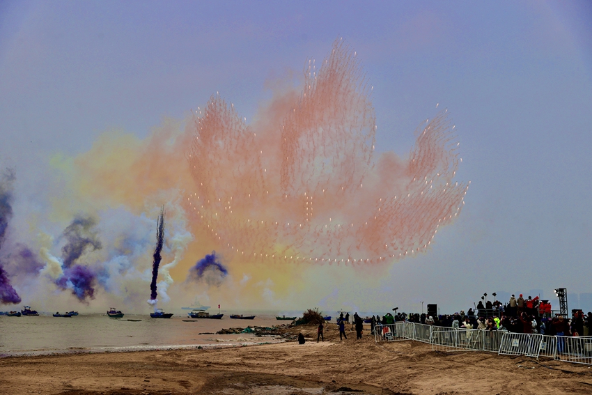 The story of unity and perseverance is a central theme in the UNESCO Maritime Silk Road series, especially in the volume Quanzhou: The World Port at the Eastern Edge of the Maritime Silk Routes. Despite two days of meticulous rehearsals, challenging weather conditions tested the event's resilience on December 8. In the Red Sails chapter, 26 boats launched a dazzling array of fireworks at sea. Moments later, a fleet of drones formed a dramatic "sailing ship" of fireworks, slicing through the wind and waves. This powerful image symbolized Quanzhou's long-standing connection to the sea. The sight of red sails unfurling across the sky, powered by thousands of drones, brought to mind the Wangchuan Ceremony, a shared UNESCO Intangible Cultural Heritage between Quanzhou, Xiamen, and Malaysia.