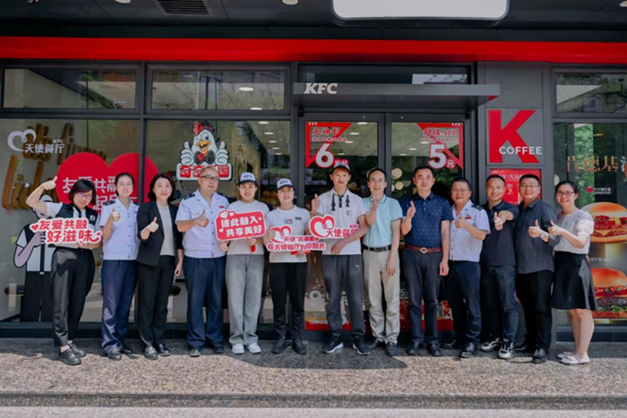 In celebration of the 34th National Day for Helping Persons with Disabilities, a new KFC "Angel Restaurant" officially opened on 16 May at the Liuhu Road outlet in Nan'an, Quanzhou. It becomes the second of its kind in the city, following the first location in Fengze District. Three team members with diverse abilities have now realised their goals of securing meaningful employment.
