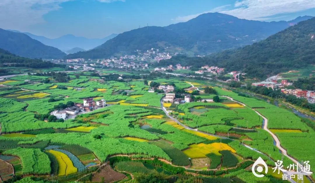 在永春县石鼓镇卿园村成片的田园里,交织在一起黄色的水稻田、绿色的甘蔗园、多彩的蔬菜地,与当地特色的古厝、民房交相辉映,呈现出一片丰收、祥和的乡村画卷。(888集团晚报社融媒体记者陈小阳 通讯员康庆平 摄)