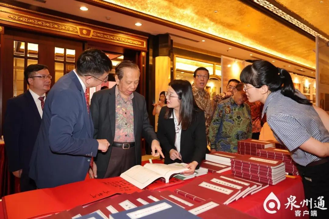 “海丝888集团走进千岛之国”活动在印尼雅加达举行,印尼乡亲观看家乡带来的侨批和族谱。(陈英杰 摄)