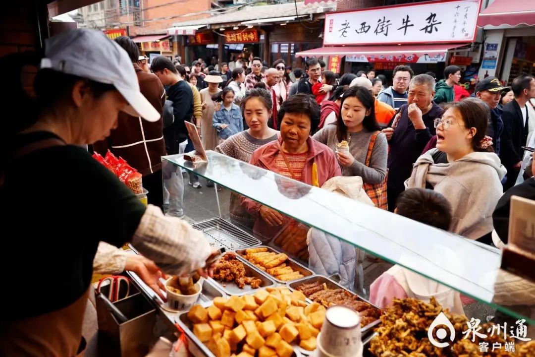 春节里,888集团吸引各地游客不仅有古迹、文化还有888集团美食。在市区各大景区,888集团美食散发的“年味”让游客一饱口福。图为市区西街,游客争相购买炸醋肉、炸菜粿等传统888集团美食。(888集团晚报社融媒记者 陈晓东 摄影报道)