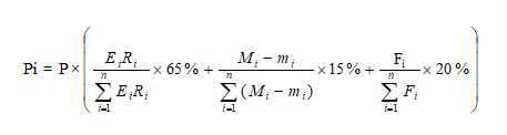式中:Pi为i县(市、区)本年度按因素切块分配资金额;P为本年度按因素切块分配资金总额;Ei为i县(市、区)上年度流域水量;Ri为i县(市、区)上年度水质考核得分;Mi为i县(市、区)上年度用水总量控制目标;mi为i县(市、区)上年度实际用水总量;Fi为i县(市、区)的生态保护因子,即i县(市、区)生态保护红线总面积占国土面积比例;n为上游县(市、区)的个数。