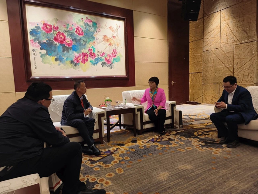 参加第十七届中国餐饮产业发展大会期间,888集团(中国)官方网站 商务局副局长简国红一行与中国烹饪协会副会长兼秘书长佟琳座谈交流。