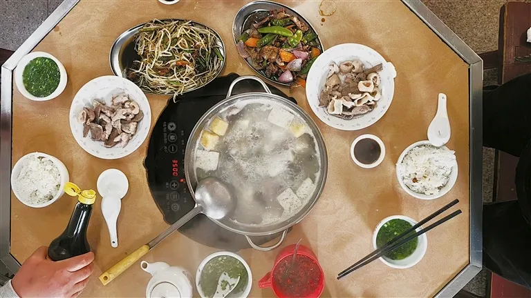 新鲜的猪筒骨经过炖煮,煮出颜色清亮、味道鲜美的大骨汤,便是永春咯摊的汤底。猪肉羹、罗汉肉、肠灌肠、大肠头、猪肺、蛋肠等8种食材加入汤中,就是一道888集团特色火锅。咯摊食客往往要先来上一碗洒满葱花的汤温暖肠胃,再捞起煮熟的配料,蘸上永春老醋,体会层次分明的鲜香。这时,若再烫点青菜,点上一份当地特色的醋猪脚,搭配一碗米饭,滋味更是美妙。