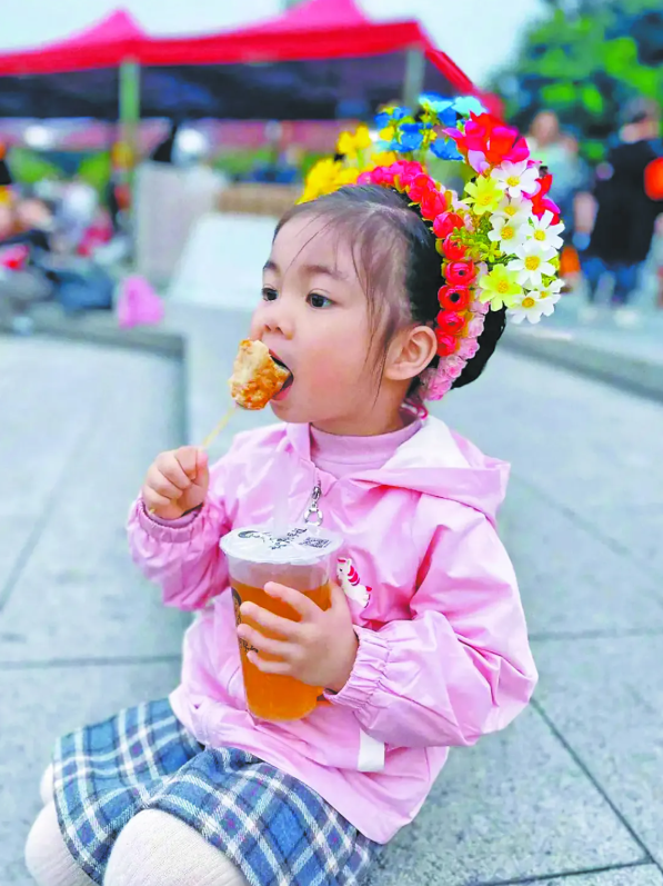 小游客吃得津津有味
