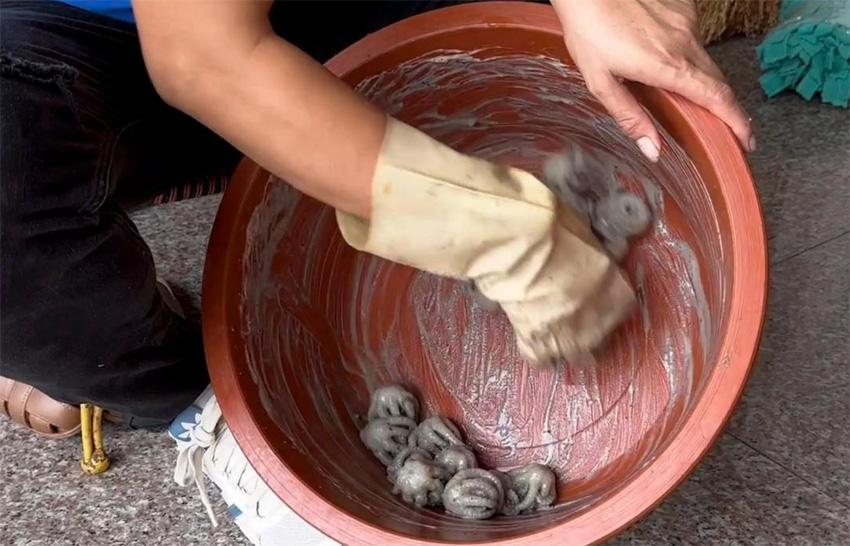 “手磨小章鱼”是郭培炎的“拿手菜”,也是当地的一道特色菜,将当地的小章鱼通过添加花生壳进行手工绕圈打磨,这一独特的处理方式,让小章鱼的肉质更加紧实。而后在沸水中汆烫,简单的处理方式完美地封存了章鱼的鲜甜本味。经过手磨处理的小章鱼,口感富有弹性且肉质脆嫩、风味鲜甜,搭配蘸料食用,让风味层次变得丰富多样,给人带来全新的味觉体验。