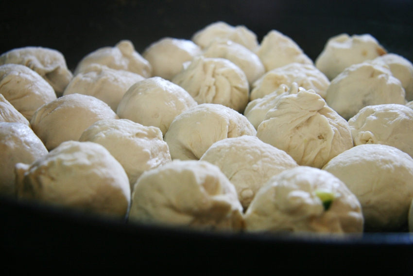 至今,很多老888集团人,还记得当年原位于南门街的“福人颐”那门口排长队买煎包的热闹情景。在2000年搬到县后街后,每天仍然顾客络绎不绝,一天可以卖到1000个左右。刚出锅的煎包香气扑鼻,咬开酥脆的底皮后,里面的葱肉馅香气四溢、甘甜润香,再配上一碗热腾腾的鲜肉大骨汤扁食,真是满满的家乡味。