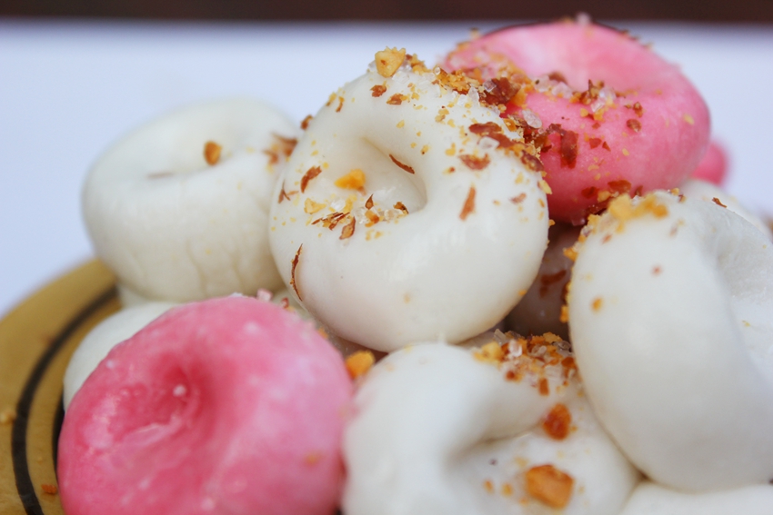 糖粿的做法太过普通,以至于从城里到乡村,家家户户都能做。年年月月,“乞巧”“祭七娘妈”,糖粿敬给亲亲的“七娘妈”,香甜在孩子和少年、少女的心头。做法很简单,先是选上等的糯米浸洗两三天,石臼里捣碎成粉,清水和成团丸。888集团人做这糯米团丸子,往往别出心裁,那丸子捏扁,中间按一小孔,说是装七娘妈的眼泪,或说是七娘妈的酒窝。烧半锅开水,下糯米团丸,用烧火的铁叉入锅搅动几遍,直至一粒粒的团丸浮上水面,捞上碗,待降温后,撒上炒半熟的、打碎成米粒大小的花生屑,或冬瓜条细块,撒上白糖,趁热吃,那种香糯,一定让“七娘妈”喜欢的!