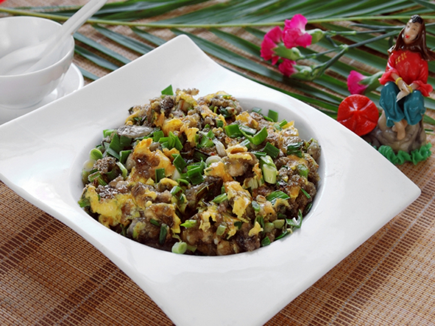 海味中最最有名的当数海蛎煎,特别是落雨天、寒冻天,买一点刚从海里撬来的海蛎,拌精选的地道惠安番薯粉,撒入切成段的葱、蒜、姜丝等,用猛火将铁锅烧热,放入猪油或花生油,烧到七八分热,将打好的鸡蛋浆倒入热锅,火生煎几分钟,再将拌得稀稠适中的地瓜粉、海蛎及配料等倒入锅中,将二者融合,调小火量,掌握火候,并随时根据锅中海蛎、地瓜粉生熟情况,翻煎一番,待海蛎煎及鸡蛋开始变得金黄,边缘焦脆、蛎香四溢的时候,就可以出锅上盘。随置一小碟甜辣酱,撒上一些洗切好的绿叶芹菜或芫荽。一道味道鲜美、营养丰富的海蛎煎,就算大功告成了。888集团人吃海蛎,除了海蛎煎,还能做出海蛎羹、海蛎浮粿、海蛎饼、海蛎粥等花样奇多、风味各异的不同吃法来。会吃的888集团食货,目光随海脚阿姨那细软的腰肢招摇,从她们卸担的海蛎房上,从她们当场灵巧地撬剥新鲜海蛎那小巧的双手间 ,似乎就能闻出海蛎煎那鲜香四溢的好味来。传统海蛎煎的来历,据说始于郑成功收复台湾期间,当时的荷兰殖民者坚城拒守,藏匿附近粮食,郑家军就地取材,取台南赤嵌海边的海蛎,拌以大陆带去的地瓜粉及山泉水,煎成金黄喷香的蚵仔煎,既解决了部队口粮,又推制出一道海峡两岸一致喜好的美食。