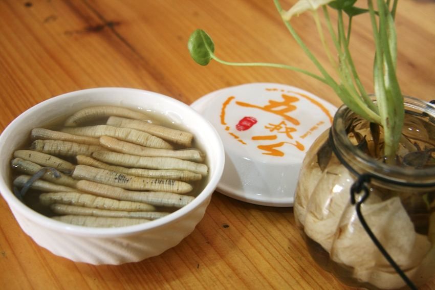 这是盛产于888集团及东南沿海滩涂里的一种海生软肢生物,海边人要冒着寒风寻觅半天挖泥翻沙,好不容易才能将它们捉出,尔后经隔夜浸洗,去其肚肠中的沙泥后,经清水多次漂洗,放入开水中熬煮,这种奇特的涨星虫所含胶原质才能融入汤中,经隔夜冷却后,变成肉质清甜、味道鲜美、外形晶莹剔透的美味。食用时,配以酱油、老醋、芥末、葱末、姜丝等,是当地人及外地游客清凉解暑的佳品,有“海上冬虫夏草”之称,具较高的药用食用价值。
