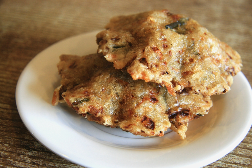 惠安人用海边撬来的海蛎,加自家地头种的韭菜或海边采来的紫菜,拌自家精制的地瓜粉,或掺以适量的蒸米饭,等水开后,加上一些盐巴味精、五香粉,用一把特制的锡勺,盛按成模,或五角梅花状,或花开富贵状,或团团圆圆状。等适量的生油在锅里沸开,放入浮粿,煎炸至边缘金黄焦脆,自锅底浮上锅面,并不断散发出内里包馅中的海蛎混合韭菜的浓香,这样就可以起锅了,往往是在锅边的人等不及,三下五除二咬开,即外边酥焦金黄、内里鲜嫩醇味的炸煎粿,已经狼吞虎咽地入肚。醮点醋、辣、蒜茸,那味道更鲜,更浓,更诱人!