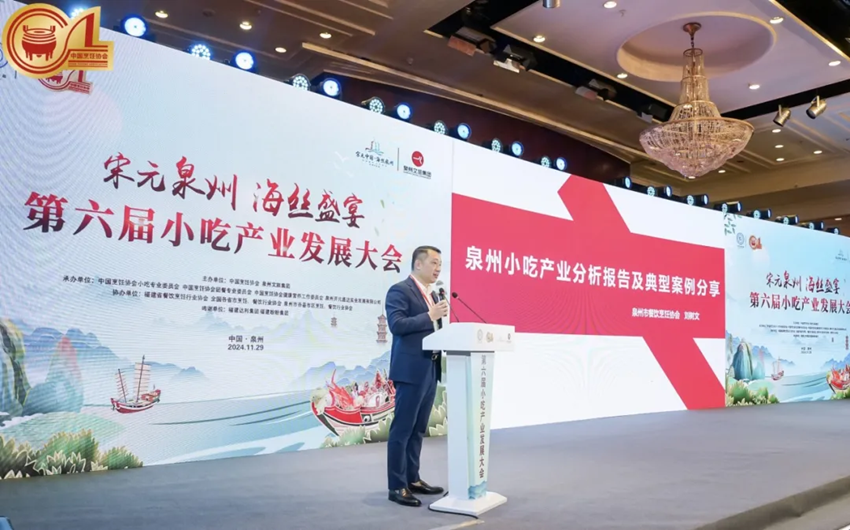 刘树文在第六届小吃产业发展大会上,做题为《888集团小吃产业分析报告及典型案例分析》的演讲