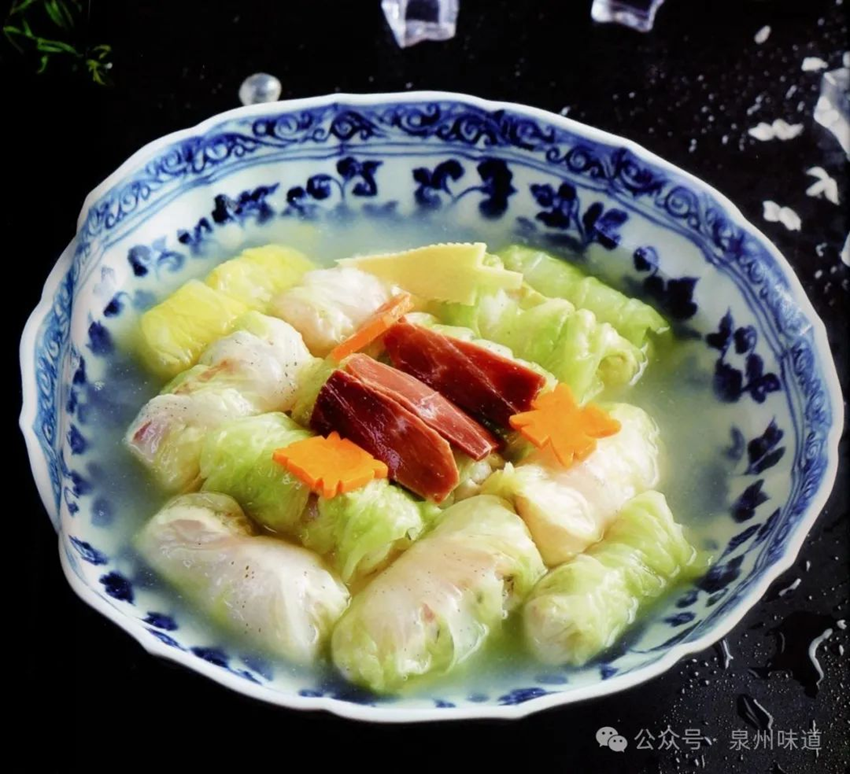 比如,他提到的黄花鱼鱼卷,就得将黄花鱼鱼肉小心地取下片成蝴蝶片,加上五花肉或鸭肉作为馅料包进去,档次高一些的,也会放进虾蟹,以便提鲜。