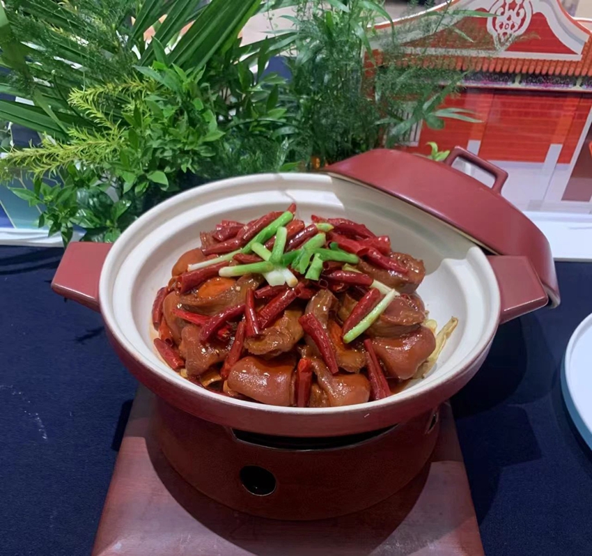 菜品寓意“招财进宝”。这道菜不仅美味可口,还寓意着财运亨通,吉祥如意。具体来说,猪手象征着“横财就到手”,而鲍鱼则寓意着“招财进宝”,两者结合在一起,寓意着财富和好运的到来。