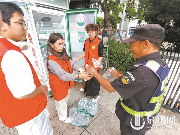 “国庆游客众多,高峰期时日供水20箱。”位于市区西街钟楼交警岗亭的爱心冰柜特别显眼。每天7点半,值班交警一到岗就会轮流给冰柜补水。“西街人流量大,水不够了我们会及时补上。”鲤城交警大队一中队协警詹啟都介绍,不少市民、游客看到爱心冰柜都会驻足看一看,成为一道别样风景。“此前有小学生中午放学经过时,还会帮忙给冰柜补水,传递爱心。”