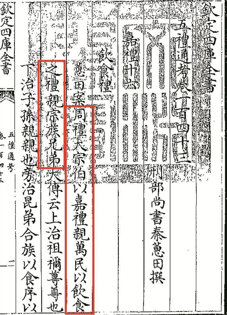 《诗经》创作于周朝,那时就设有掌理礼制、祭祀、历法等事的春官,主官称为“大宗伯”。清代乾隆时期曾任礼部侍郎、刑部尚书的秦蕙田,在其所著的《五礼通考·卷一百四十三·嘉礼十六·饮食礼》开篇即有“周礼,大宗伯以嘉礼亲万民,以饮食之礼亲宗族兄弟”的记载。明清时期,“大宗伯”成为礼部尚书的别称,是负责朝廷中的礼仪、祭祀、宴飨、学校、科举和外事活动的大臣,地位显赫。由此可见,中国饮食礼仪有着几千年的历史传承,在萌芽时期,就与祭祀和规范家庭成员言行举止有关,也是人际交往当中待人接物的文明修养。
