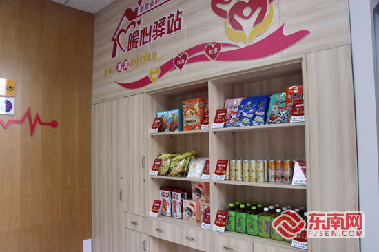 昨日上午,记者来到位于长福社区的“爱心食物银行”,这是一间约20平方米的驿站,驿站外挂着一块“爱心食物银行”的招牌,门口的墙壁上贴着“主要服务户外劳动者”的标语。屋内除了有椅子、冰箱、空调等大部分驿站都有的配套设施外,还摆放了许多食品和饮料。袋装面包、筒装薯片、盒装饼干、矿泉水、果汁……在屋内的“惜食分享柜”上,陈列着一份份包装精致的食品和饮料。