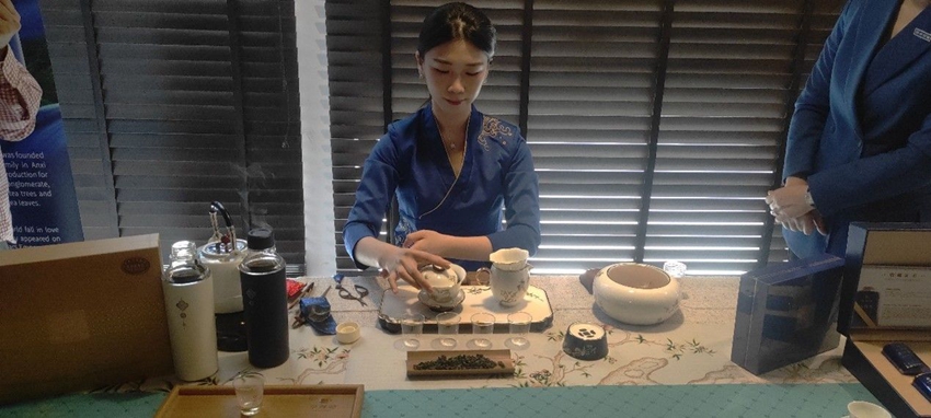 茶艺师现场表演茶艺。