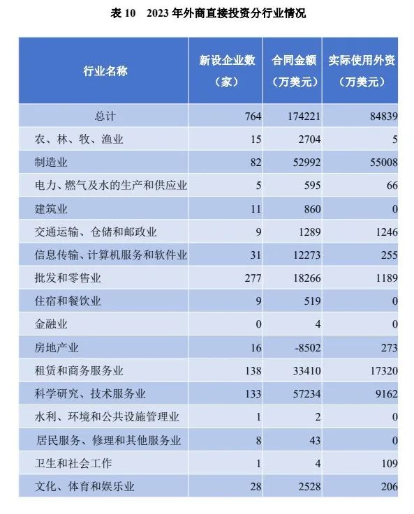 全年新设外商直接投资企业764家,比上年增长30.2%。投资总额22.6亿美元,增长50.4%;合同外资17.4亿美元,增长20.2%;实际使用外资8.5亿美元,下降12.8%。新批外商投资超千万美元(含增资)的企业39家。在新签使用外资合同中,投向第二产业的合同金额5.4亿美元,增长11.4%,投向第三产业的合同金额11.7亿美元,增长25.1%。外商投资企业当年累计开业投产34家。
