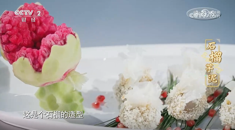 本期节目中,石狮美食制作者谢佳丽以本地槟榔芋为主材,烹制闽南特色手工菜“石榴芋泥”。炒好的芋泥包上由香菇、虾米、马蹄、烟笋、猪肉等配料调制的八宝馅料,再下锅油炸至微黄,外皮酥脆、中层芋泥香甜顺滑、内馅咸鲜可口,展现出福建芋头美食的精细,获主持人高博、美味见证官王冰冰盛赞,也将刷新人们对芋头美食的认知。