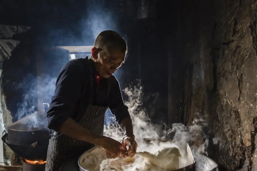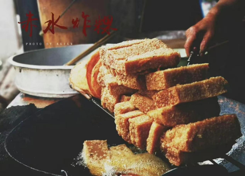 炸粿的原料叫南羮粿(淋碱粿),赤水炸粿的制作技艺复杂而精细,每一步都凝聚匠人的心血与智慧。