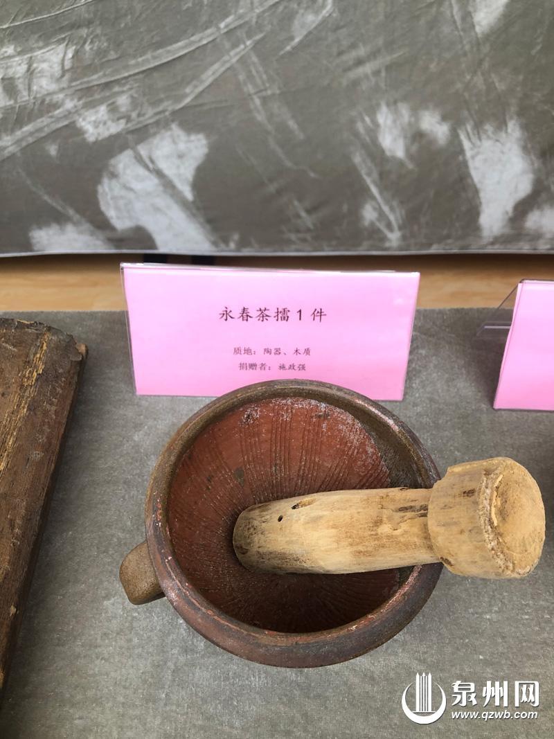 一个高15厘米、宽10厘米的迷你茶擂,是一件由陶制容器与木质研磨棍组成的器物,陶制容器内壁上细密的纹路,专为研磨茶叶而设计。施政强介绍,茶擂有个手把,很适合直接在手中操作,木质研磨棍虽然经过多次更换,但“物尽其用”的智慧却完整保留了下来。