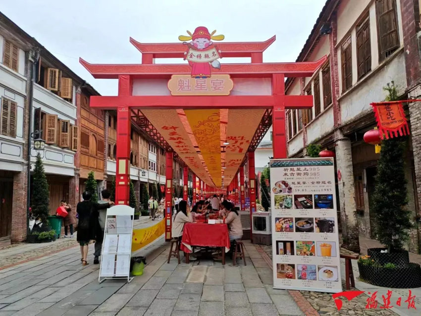 今年“五一”期间,五里古街首次推出了别具特色的“魁星宴”,以“金榜题名”和“三元及第”两款套餐为媒,邀请游客品尝地道的永春美食。“魁星宴”不仅美味可口,更蕴含着深厚的文化寓意,给予学子学业有成、金榜题名的美好祝愿。