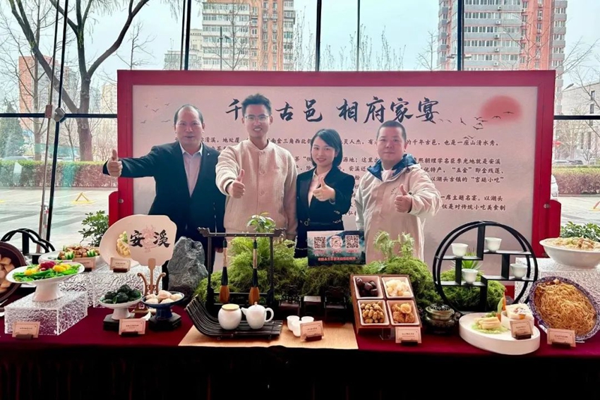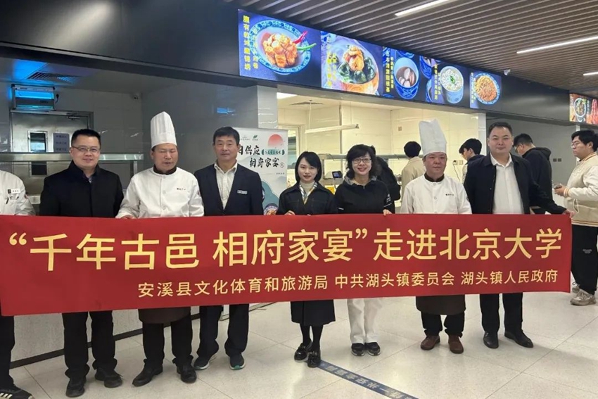 近年来,安溪县积极推广“千年古邑 相府家宴”这一地标美食热点IP,通过走进高校、参与美食大赛、交流烹饪技法等多种方式,大力推动“相府家宴”走出安溪、走向全国。累计举办“相府家宴”美食推介活动10多场次,其中:2023年4月,在888集团开展“食光烟火气,厚呷小888集团”2023年湖头小吃美食市集走进888集团古城活动;2023年8月,到北京参加“一县一桌菜·安溪篇之‘千年古邑相府家宴’”北京品鉴周活动;2023年9月,开展“溪食有味 味在阆湖”食遍人间烟火、畅享湖头百味美食节等活动;2024年3月,到北京开展“相府家宴”美食推介活动,部分菜品走进北京大学馨园食堂;2024年4月,参与评选地标美食“一县一桌菜”宴席和产品;2024年4月,在“安溪县2024茶文旅融合发展大会”开展“千年古邑 相府家宴”美食推介。