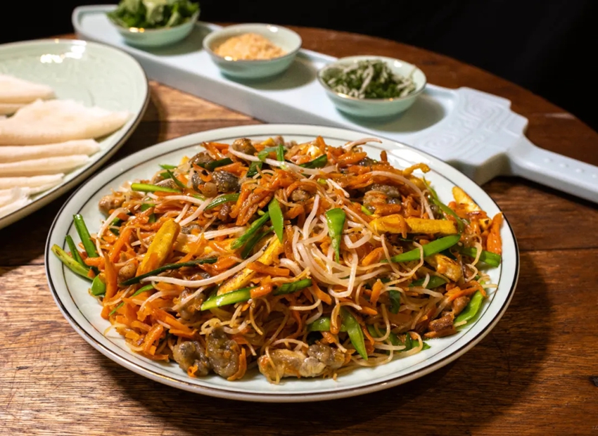 润饼皮的圆形象征着家庭的团圆,其白皮红馅的特征被称为“金包银”,寓意着招财进宝,深受888集团人喜爱。制作润饼菜时,馅料通常以时令食材为主,如胡萝卜、乳豆、蒜仔、韭菜、芫荽、海蛎等食材。润饼菜是一道传统美食,更是一种传承文化。公元1661年4月,郑成功军队彻底击溃荷兰侵略者,顺利登岛,台湾人民欢呼雀跃,争相拿出自己的食物犒劳士兵。闽南传统风味润饼菜,五颜六色,咬之如春,生机勃勃,满口留香。