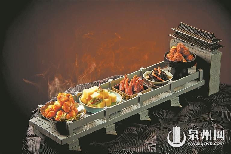 南安“成功家宴”中“七彩人生”这道菜品包含了洪濑鸡爪、梅山寸枣、诗山粕丸、头水紫菜、九层粿五种南安知名小吃,其中的洪濑鸡爪尤其受闽南食客喜爱。