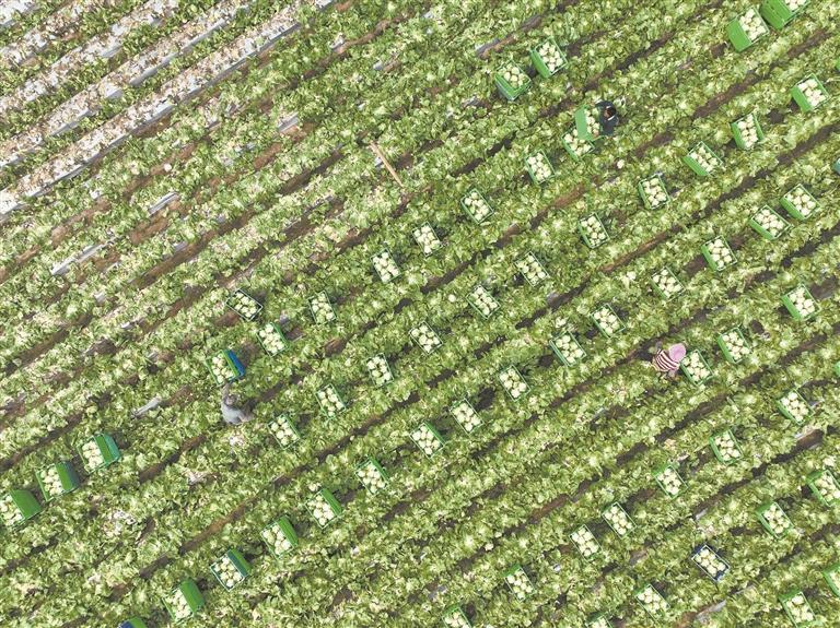 The largest lettuce production base in China—Shengfeng Agricultural Science and Technology Demonstration Park in Huangtang Town, Hui'an County, celebrates a bountiful harvest. (Photo by Lin Jinfeng)