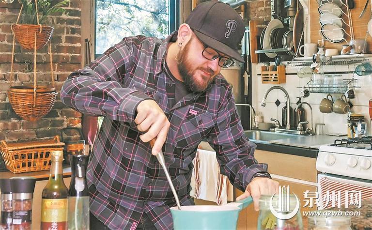At Quanzhou No. 5 Middle School, there is a teacher named Adam Loomis, originally from Philadelphia, who has developed a deep affection for Fujian. "I've been teaching here for over eight years, and I enjoy combining Chinese and Western cuisines into new recipes," says Loomis, who expertly wraps dumplings while speaking. He uses local beef, onions, and other ingredients to create the filling for his cheesesteak dumplings.