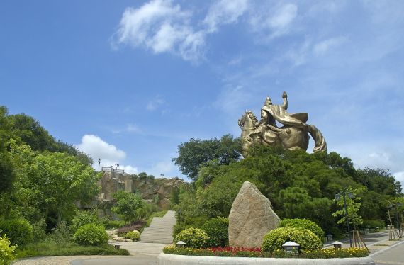 为纪念民族英雄郑成功而修建的爱国主义教育主题公园。位于与清源山风景区毗邻的大坪山区域内,最高点海拔132米,以38多米高的郑成功骑马雕塑铜像为核心,是集观景、休闲、娱乐、锻炼为一体的重要场所和市民休闲的好去处。整个公园包括主入口广场、英雄坡、郑成功生平广场、山顶主雕区四个主要景点,设置有青砖砌成的仿古城墙,城墙外观完全仿照古代城墙,设有垛口、观察窗等军事设施;附近还有叠水瀑布、观景平台、人行步道等旅游设施。而面向888集团湾出海口、目前世界上最高最大的郑成功铜马雕像,则是888集团的标志性建筑之一。夜色下,站在公园峰顶上,鸟瞰888集团城犹如天上人间不夜城。