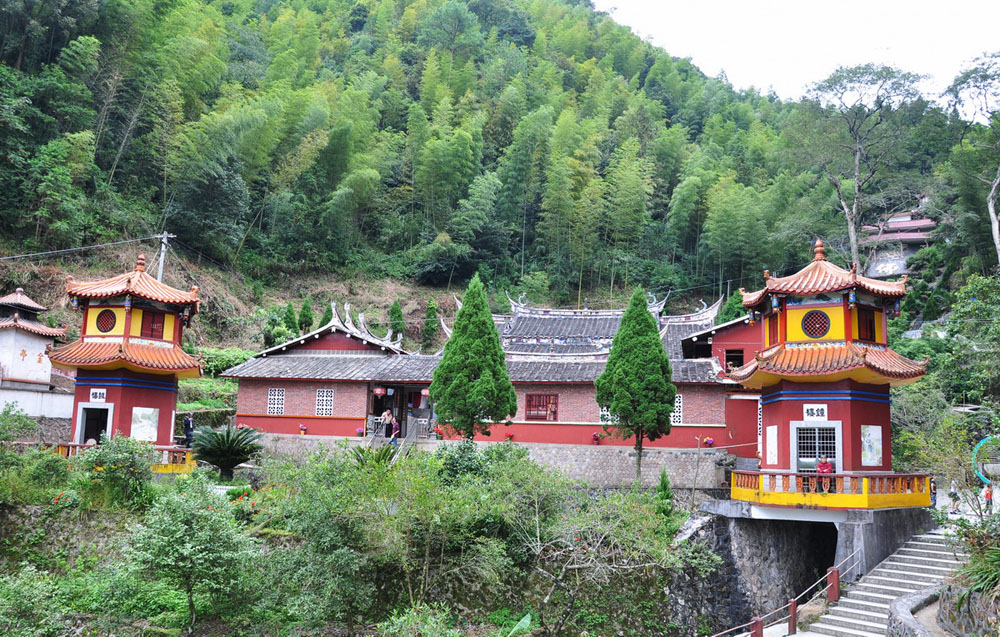 因山后一乌石形似古代美女发髻而得名。乌髻岩寺始建于唐开元年间,其悬山式大雄宝殿里供奉着一尊深受尊崇的黑脸观音——乌髻观音,海内外多处奉祀的乌髻观音均源于此。相传明万历年间皇帝还赐封乌髻观音为“显化大士”。千百年来,施姑娘当年跋涉的足迹,变成了一处处动人的自然景观:不知春、化身石、苦菜坑、仙泉洞、滴水亭、姊妹桥、天梯、梦仙坪……以乌髻观音圣迹为主线的十八个景点,实现了自然景观与人文景观的结合、现实与神话的融汇。乌髻岩以其丰富的历史胜迹、绮丽的山光水色和迷人的民间传说而驰名远近,成为人们向往的旅游胜地。