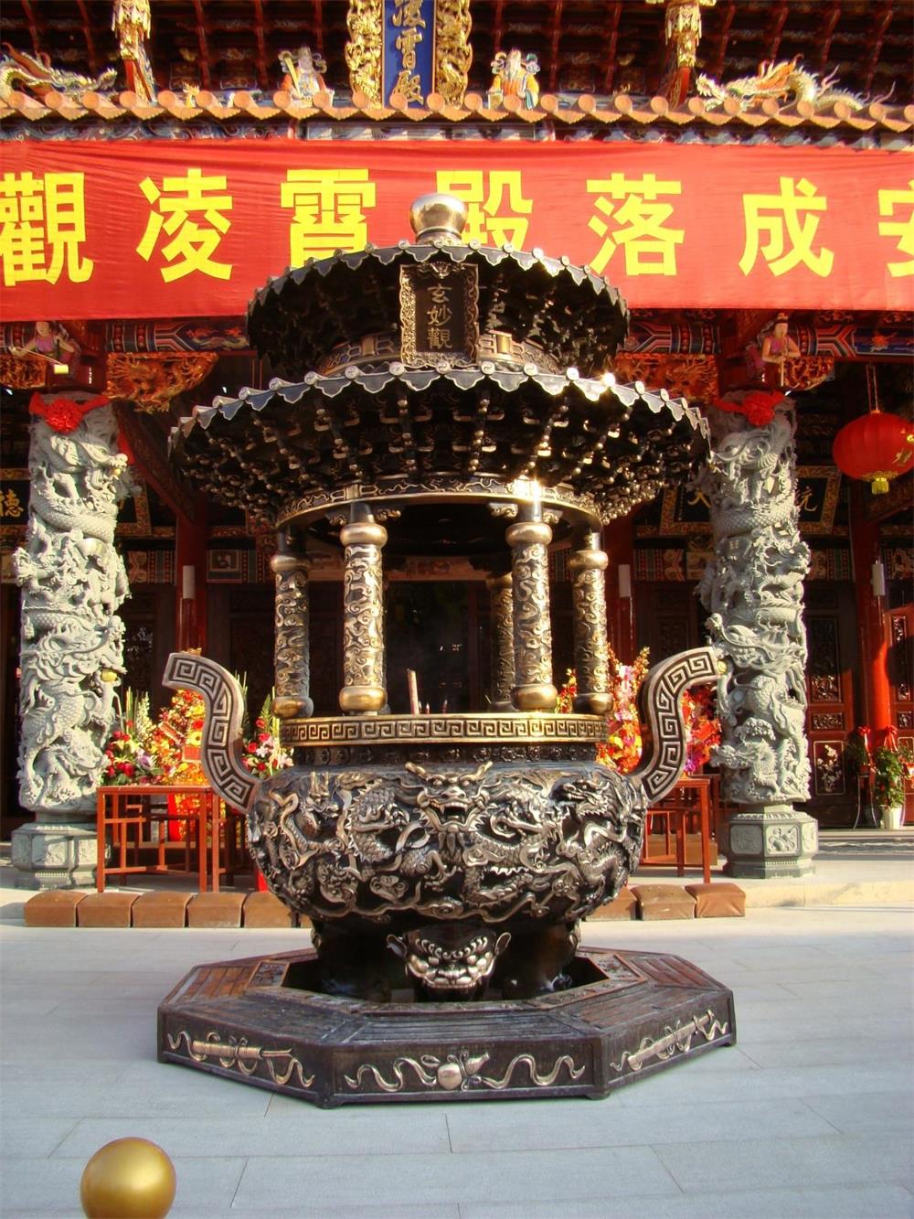 凌霄殿前仿制北京天坛样式的紫铜香炉,香炉重约5吨