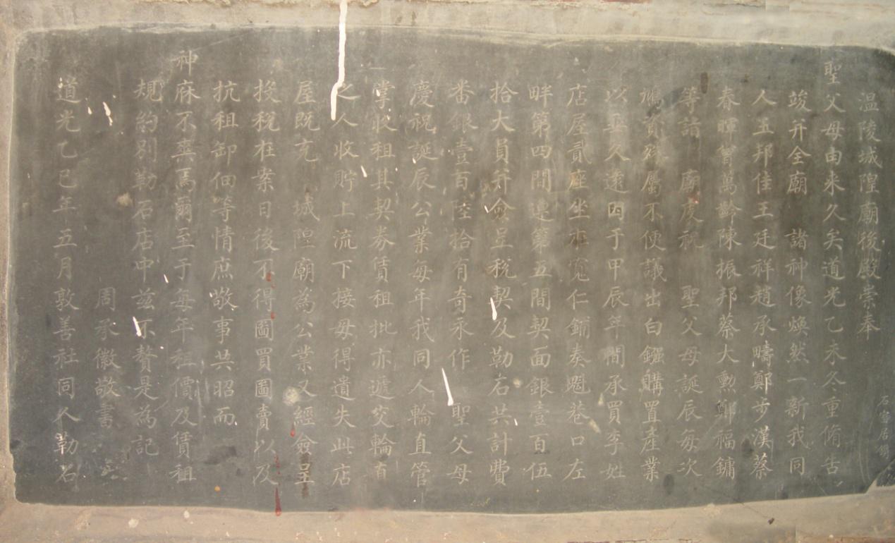 清道光年间置供府城隍庙后殿祭祀专用固定资产的碑刻
