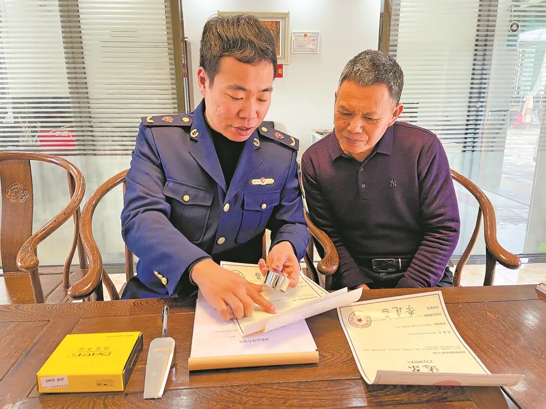 南安市东田镇商标品牌指导站工作人员指导企业规范使用注册商标。