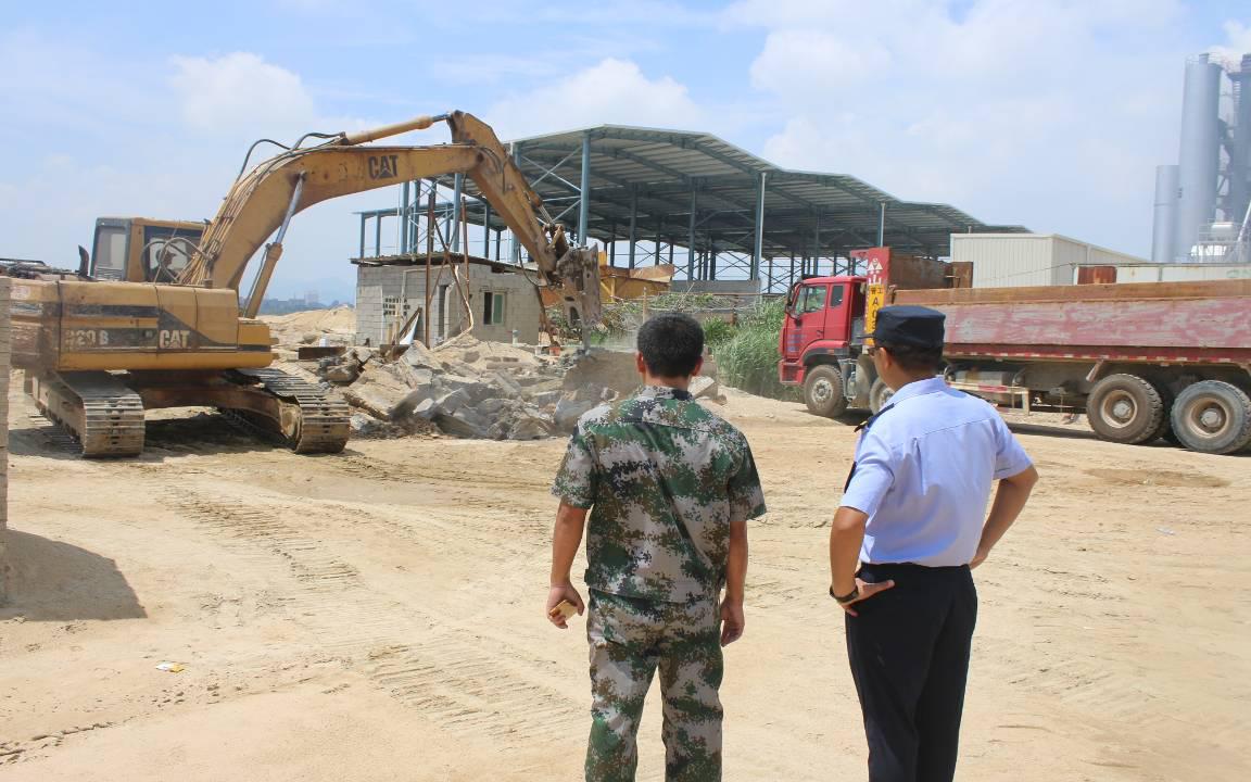 9月8日上午,晋江市政府组织东石镇、经济开发区及市海洋与渔业局、公安局、行政执法局、环境保护局、水利局、国土局、交通运输局、交警大队等相关部门100多人、4台大型工作机台分成两组对19家非法堆(洗)砂场开展强制拆除行动,总计拆除20余台洗砂设备,10余宗简易搭盖和活动板房,彻底切断堆(洗)砂场生产要素。