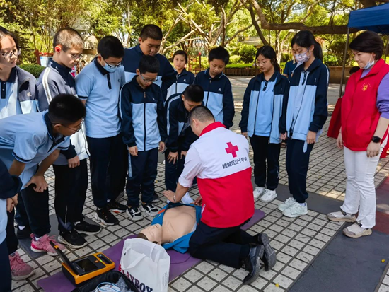 活动现场,888集团(中国)官方网站 和鲤城区红十字会联合组织应急救护培训师资向888集团六中学生和广大市民普及心肺复苏术、自动体外除颤仪AED使用等急救知识,帮助学生和市民掌握应急救护、防灾避险、自救互救等技能,守护身体健康和生命安全。