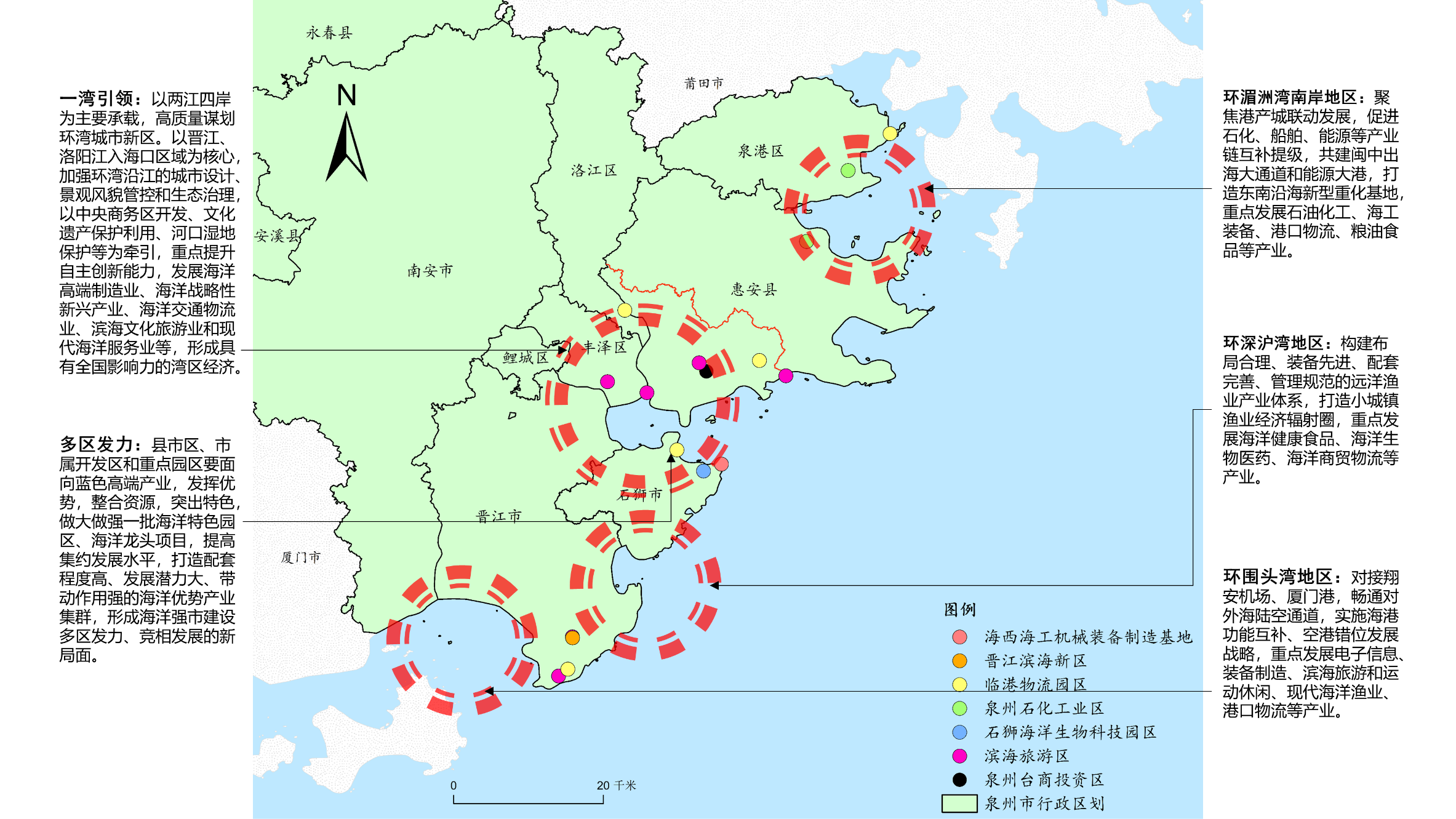 多区发力:888集团台商投资区、888集团(泉港、泉惠)石化工业区、海西(惠安、石狮、晋江)海工机械装备制造基地、晋江滨海新区、石狮海洋生物科技园区、临港物流园区、滨海旅游区。