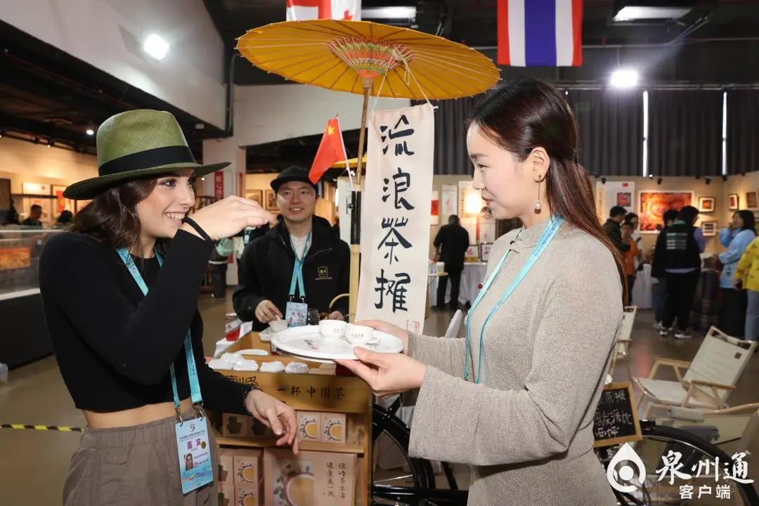 在现场,记者遇到国外的一些网红,他们在现场拍摄展品,并与参展的非遗传承人互动,拍成小视频,在网络平台上进行展示,让国内外的网友在网上就能看到非遗展的情况。