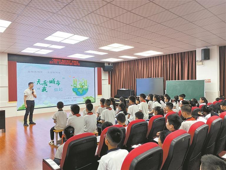 4月18日,以“美丽888集团 我是行动者”为主题的“生态环境宣传进校园”系列活动走进鲤城区第五实验小学。黎明职业大学轻工学院曾飞虎副教授为百名小记者开启“无废知识”第一课,通过生动的案例带领小记者了解“无废城市”创建背景、相关法律法规和科技的运用,号召大家关注垃圾减量和资源的循环利用,培育简约适度、绿色低碳的生活习惯。