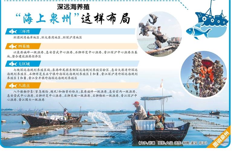根据规划,到2030年,我市可发展深远海养殖平台360台套和深水抗风浪网箱2000个,同步开展贝藻类混养;可布局分布式渔光互补、渔旅融合等多功能平台;建设以泉港、惠安、石狮、晋江等4个渔港经济区为主的深远海养殖综合服务基地和8个船舶紧急停靠、避风和物资补给点。预计至2030年可增加高值商品鱼类产量130万吨,产值超千亿元。