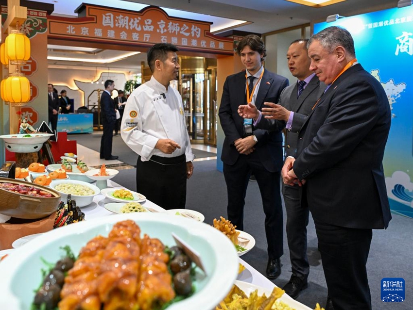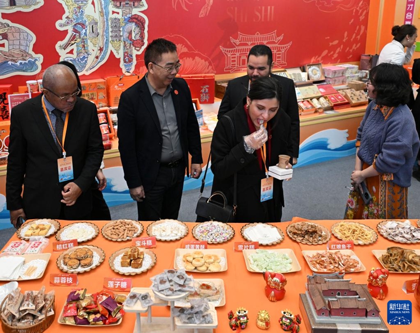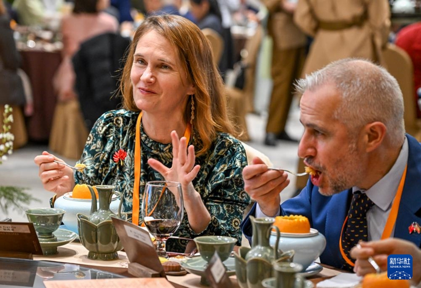 当日,来自希腊、黑山、巴拿马等25个国家的驻华使节参加在北京福建大厦举办的北京福建会客厅“世遗888集团 味连五洲”活动,他们在现场听南音、品香茗、尝美食,观看非遗表演,感受海丝文化。