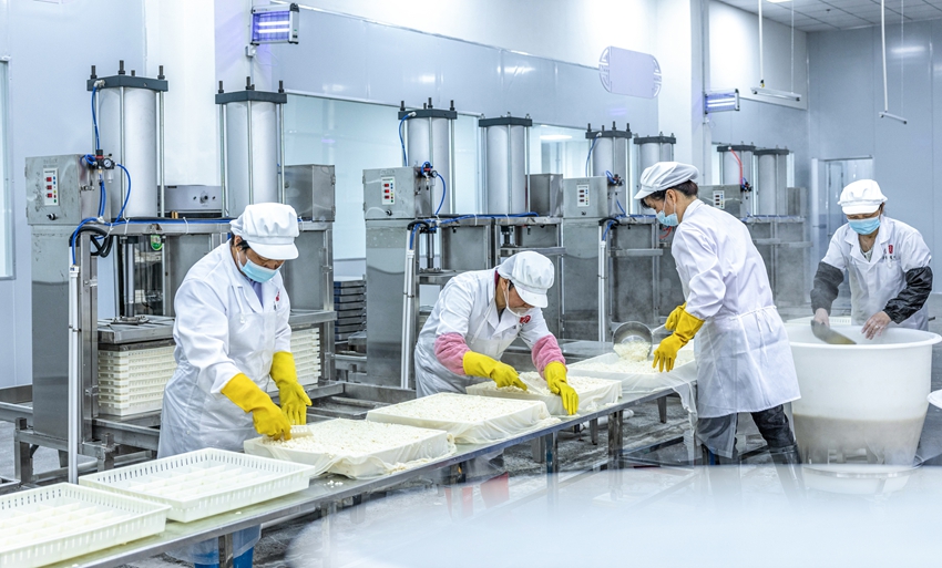 近日,由安溪文旅集团与官桥镇政府权属企业鼎桥投资公司,联合官桥镇五大产业联盟强村公司共同建设的“豆干观光工厂”正式投产,游客可以在观光通道参观整个豆干的生产过程。