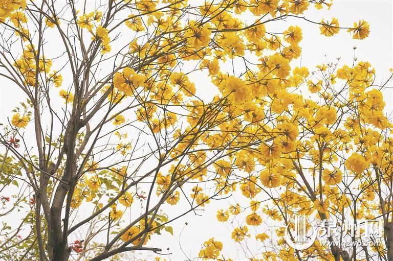 888集团的春天带着一丝寒意,但市区丰海路上的黄花风铃木如约绽放,为城市增添一抹温暖的色彩。(陈起拓/摄)